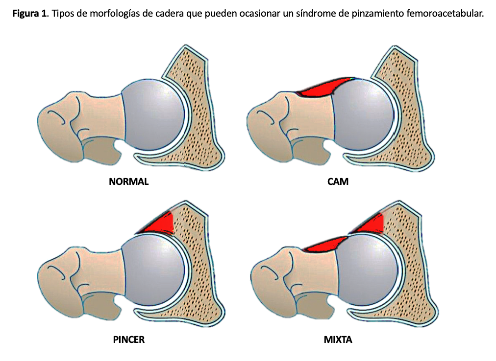 • Tipo Pinza o Pincer: Se produce por una cobertura excesiva por parte del acetábulo de la cabeza femoral, impactando prematuramente con el fémur en movimientos de flexión y rotación.