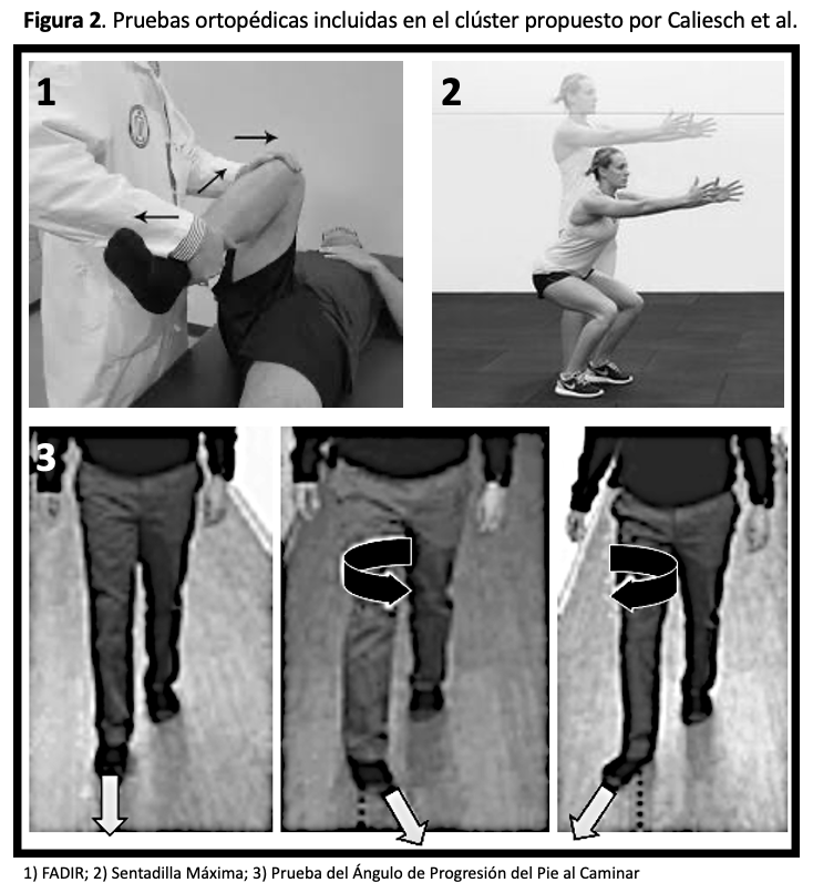 El estudio analizó un total de catorce pruebas clínicas para determinar su precisión diagnóstica en la detección de la morfología tipo Cam o Pincer en pacientes con síntomas de SFA. Las pruebas de provocación del dolor incluyeron la Prueba de Sentadilla Máxima, la Prueba FABER, la Prueba de Rodadura en el Tronco, la Prueba de Elevación Recta de la Pierna Resistida (Prueba de Stinchfield), la Prueba FADIR, la Prueba del Impingement Posterior (PIT), el Test de Scour, la Prueba de Presión en Rotación Interna (PPRI), la Prueba de Dolor en Flexión más Rotación Interna, la Prueba del Ángulo de Progresión del Pie al Caminar (PAPPC), la Prueba de Dolor en Rotación Interna, la Prueba de Flexión a 120º más Rotación Interna con Adducción, la Prueba de Compresión en Flexión a 90º más Aducción y la Prueba de Compresión en Flexión a 120º más Aducción.